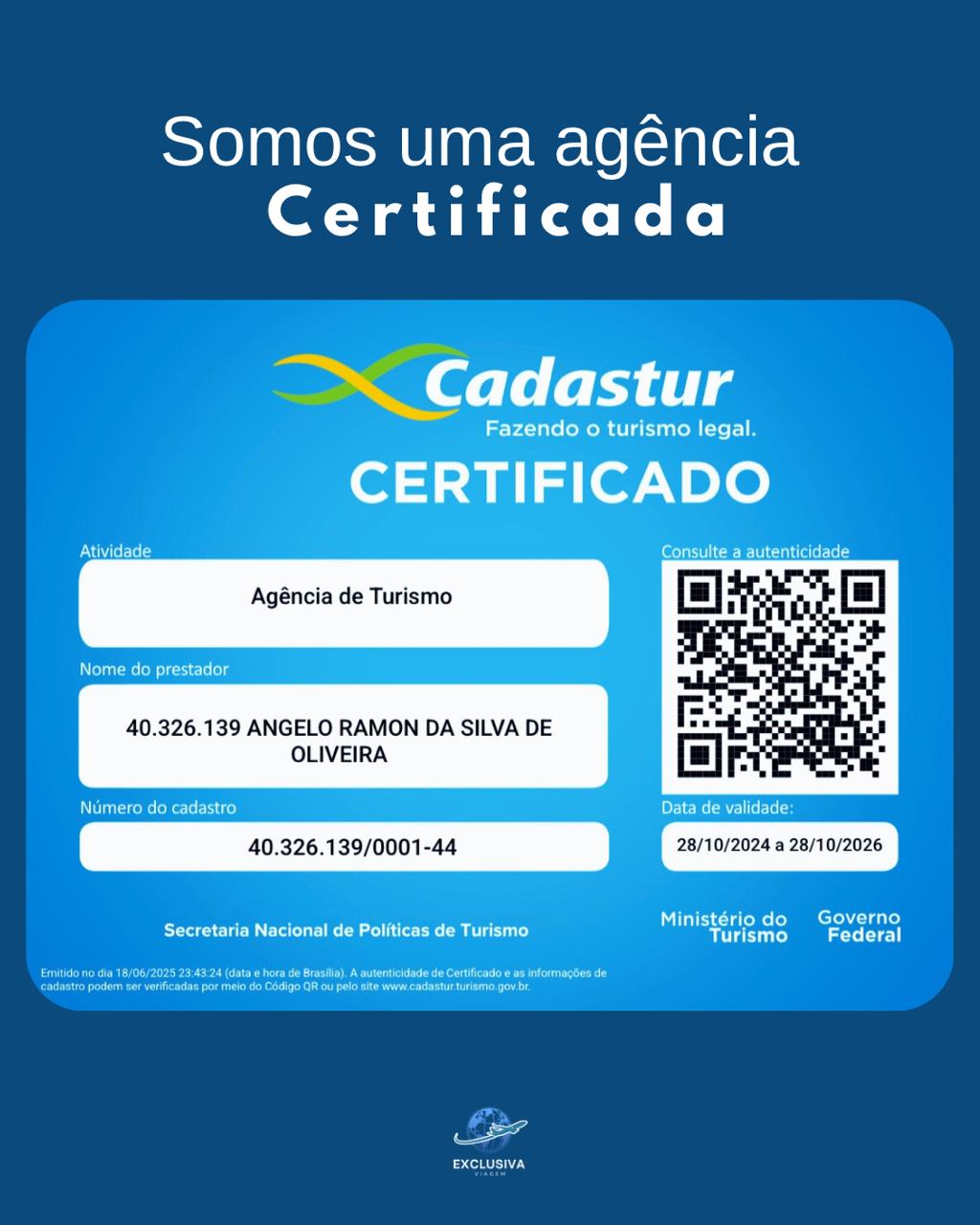 Transparência, comprometimento e paixão por realizar sonhos estão no DNA da Exclusiva Viagem. E os resultados falam por si, reconhecimento em todo país e uma clientela fiel que cresce a cada mês. Segurança e preço justo, você só encontra na Exclusiva Viagem.